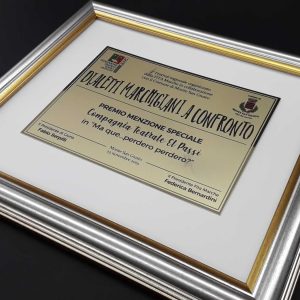 La Tipografia Mazzarini realizza targhe ricordo, trofei o medaglie in alluminio, ottone, plexiglass o vetro. Nel corso degli anni la Tipografia Mazzarini ha ampliato la gamma di oggetti per premiazioni e targhe ricordo ed è a disposizione per ogni vostra richiesta.